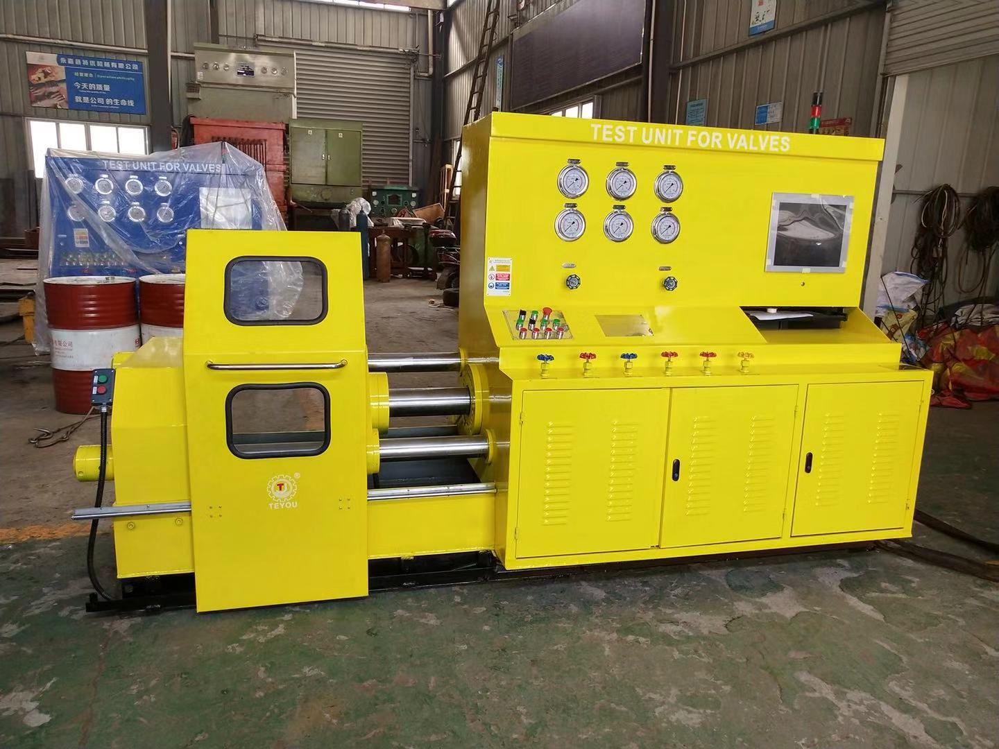由于項目涉及重要工況閥門試壓檢驗和二次檢測,項目組委會 邀請國內(nèi)優(yōu)良業(yè)績和資質(zhì)合格供應商(生產(chǎn)廠家),標委會成員技術(shù)部、設(shè)備部、采購部經(jīng)過廠家資質(zhì)能力篩選和技術(shù)論證,最終選用有中石油系統(tǒng)合作供應業(yè)績的制造商浙江優(yōu)機機械科技有限公司的新型改進型頂壓式JWT型閥門試驗臺,檢測范圍涉及法蘭、焊接、絲扣等連接閥門,口徑范圍2”-24”,壓力范圍2.5-63.0Mpa此次中標產(chǎn)品已通過浙江省工業(yè)新產(chǎn)品鑒定,也是發(fā)明專利產(chǎn)品,專利號:ZL 2016 1 0240324.1 主要針對高要求檢測單位。主要檢驗球閥、截止閥、止回閥、閘閥等。是目前國內(nèi)技術(shù)領(lǐng)先的閥門試驗設(shè)備,該產(chǎn)品先后中標中石油大慶油田工程有限公司、中石油四川油建工程公司、中石油冀東油田工程公司等,產(chǎn)品憑借高精度、智能、節(jié)能、操作方便等特點,成為第三方檢測、施工安裝單位、閥門生產(chǎn)企業(yè)首選產(chǎn)品。