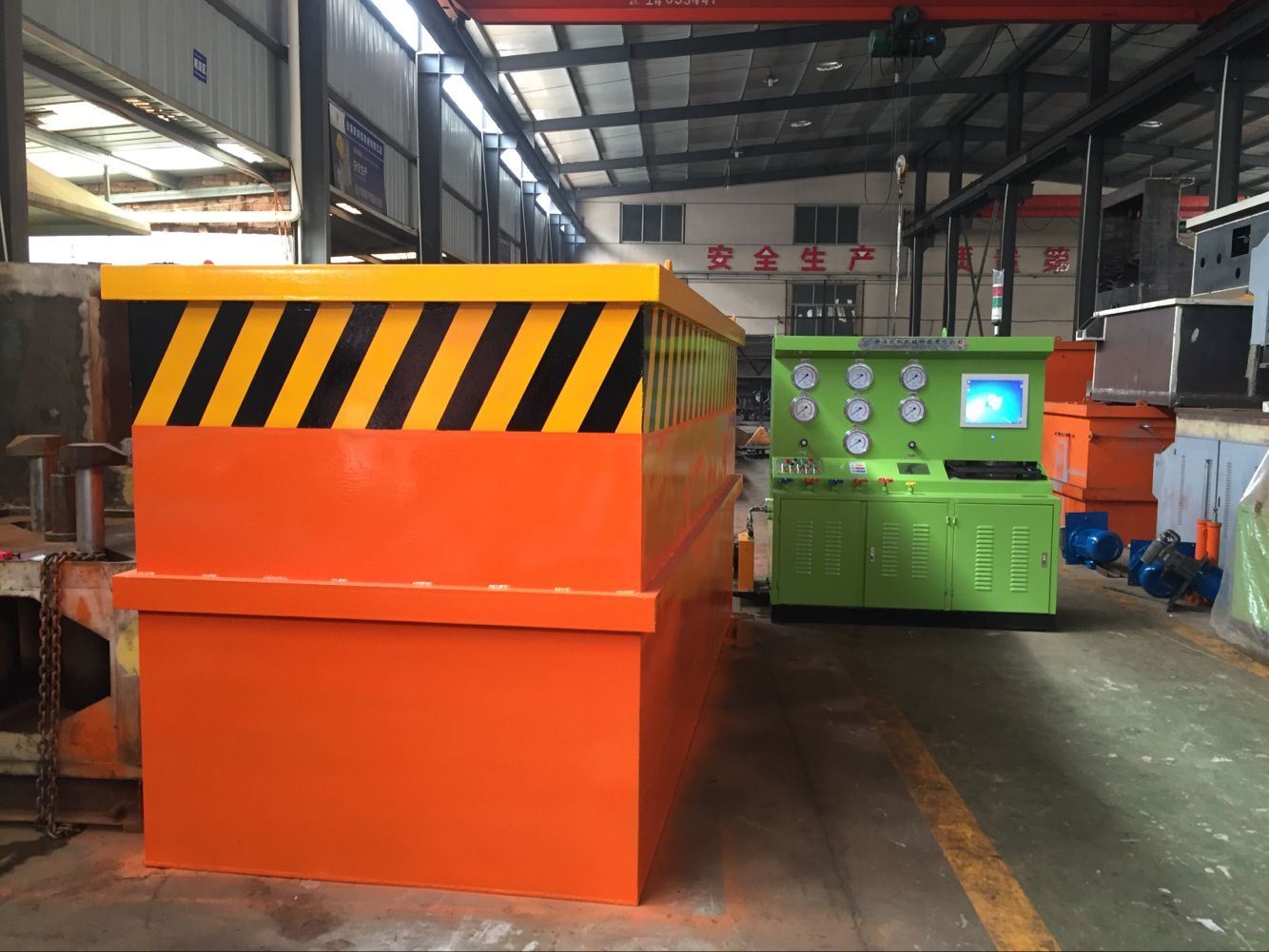 本機集機電、液壓、試壓、液體介質(zhì)貯存循環(huán)使用于一體,具有功能完善、性能穩(wěn)定、自動化程度高等特點。廣泛用于公稱通徑DNl 5-600mm的直通式法蘭及螺紋連接各類高、中、低壓閥門的強度、密封和泄漏量等各項性能測試。測試介質(zhì):水、氣、油。最高密封試驗壓力 32.0MPa,強度48 0MPa,本設(shè)備廣泛用于閥門制造業(yè)和石油、石化、核電、化工等使用、閥門維修部門等單位的一種先進理想的閥門試壓檢驗設(shè)備。