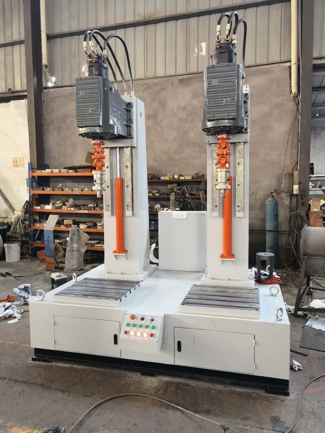JLX型旋塞閥研磨機分為一工位和兩工位研磨機、一工位研磨機和兩工位研磨機供用戶可根據要求選配。該設備通過液壓馬達來控制轉速旋轉,用液壓流量來控制轉速快與慢,根據閥門口徑大小和材質來調整轉速快慢,這樣才閥體和閥芯塞配合度為一致。用戶根據被研磨閥體的工藝要求,選擇合適的研磨劑,粗磨和精磨相結合,或閥體與閥芯塞浮動對磨。研磨頭通過液壓油缸來上升下降來實現。